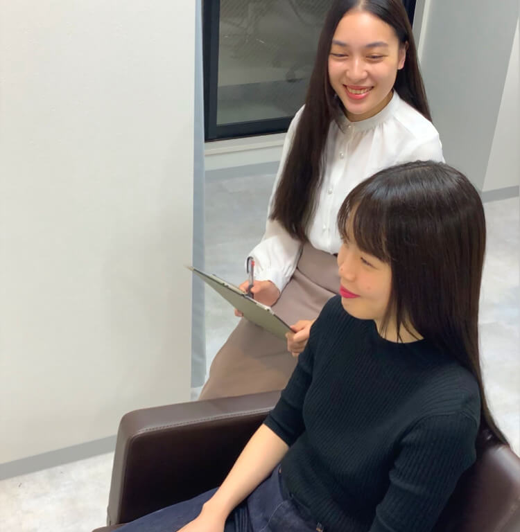 美容歴25年の森さんは笑顔でスタッフにそうゆうことを教えてくれます。その為カウンセリングは1時間まで用意しております。